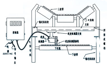 用途: 用于輸送機帶速檢測及檢測帶式輸送機在運行過程中出現(xiàn)的膠帶與主動滾筒之間的打滑,防止打滑所造成的惡性事故